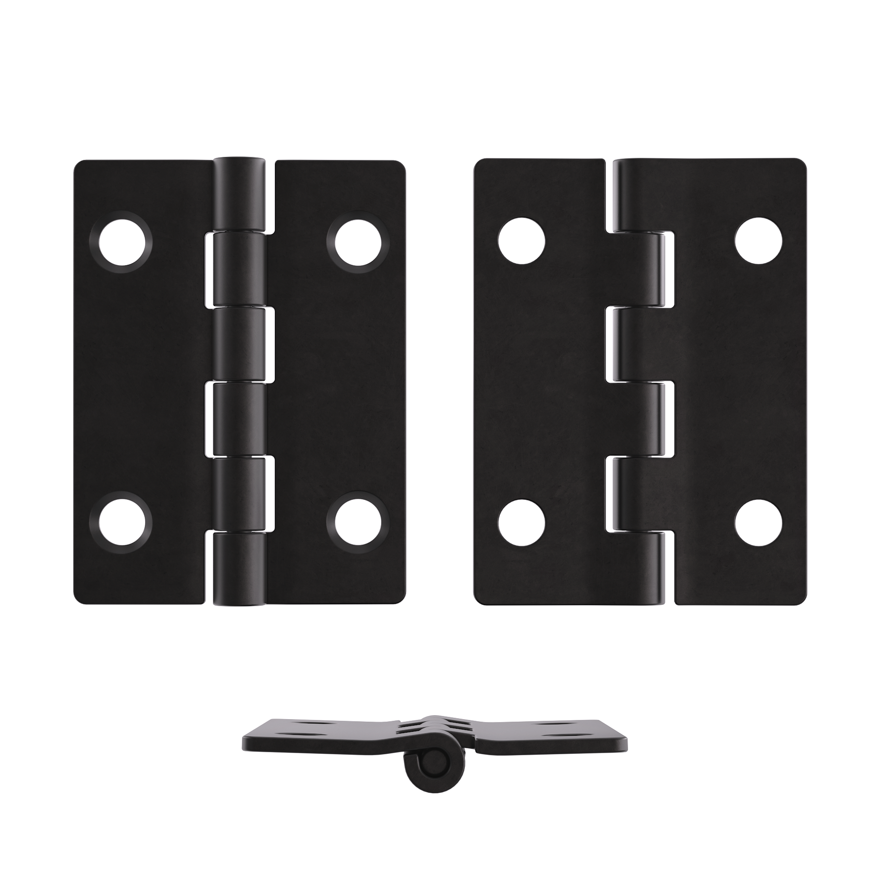 • Material: These sturdy butterfly hinges are made of steel with a flat black finish applied.