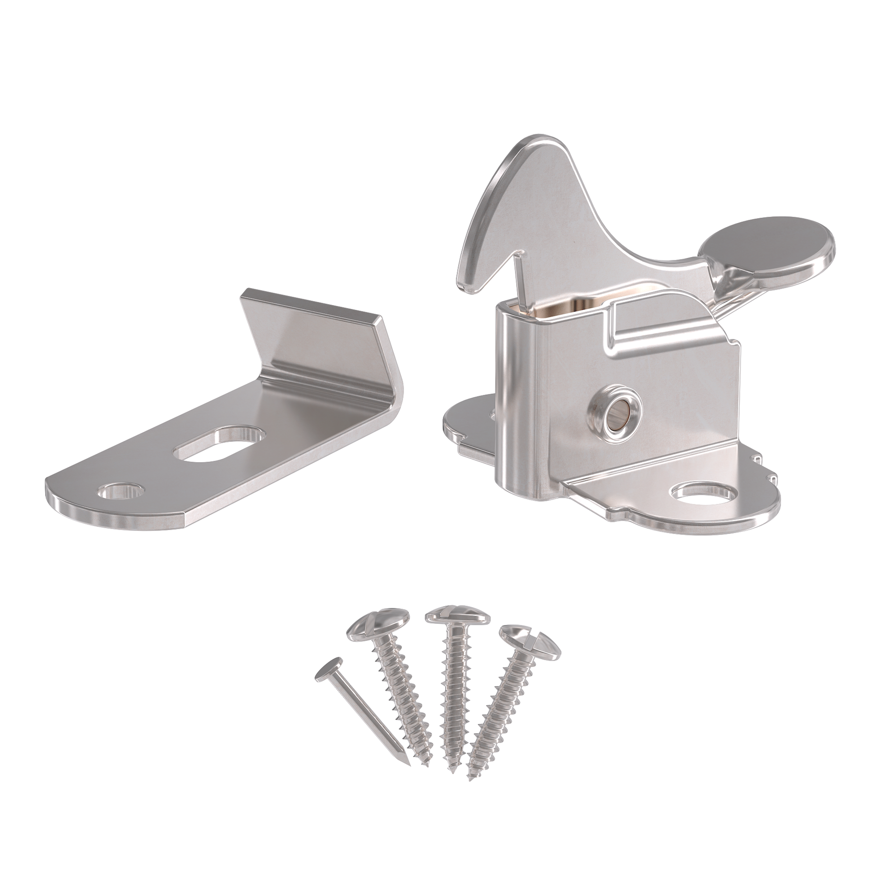 • The package contains one latch, one catch, and mounting screws. This hardware is designed to secure one door in double-door setups by locking it from the inside and can be installed on both left and right-hand doors.