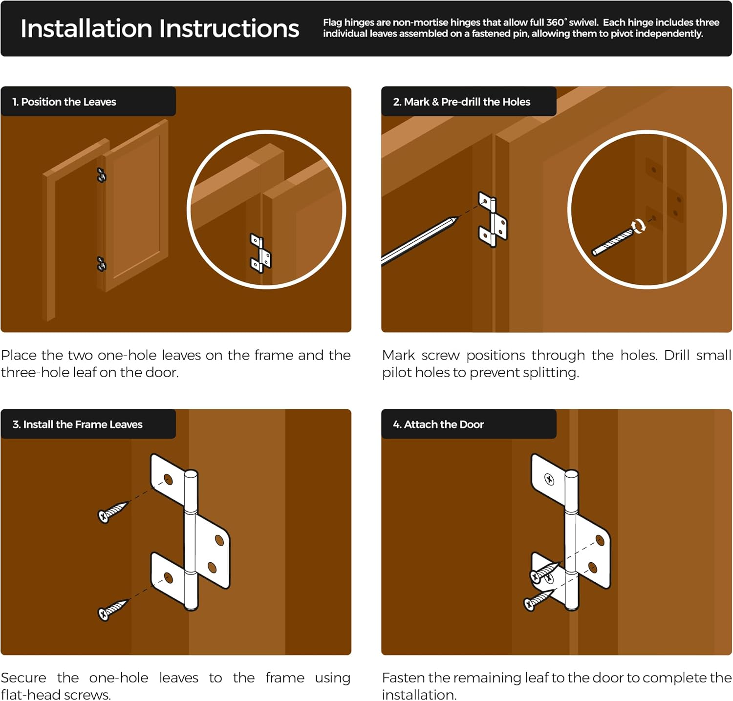 - The package contains one\ten pair of hinges with mounting screws. Non-mortise hinges require no cutting and can be mounted in the gap between the cabinet door and face frame.