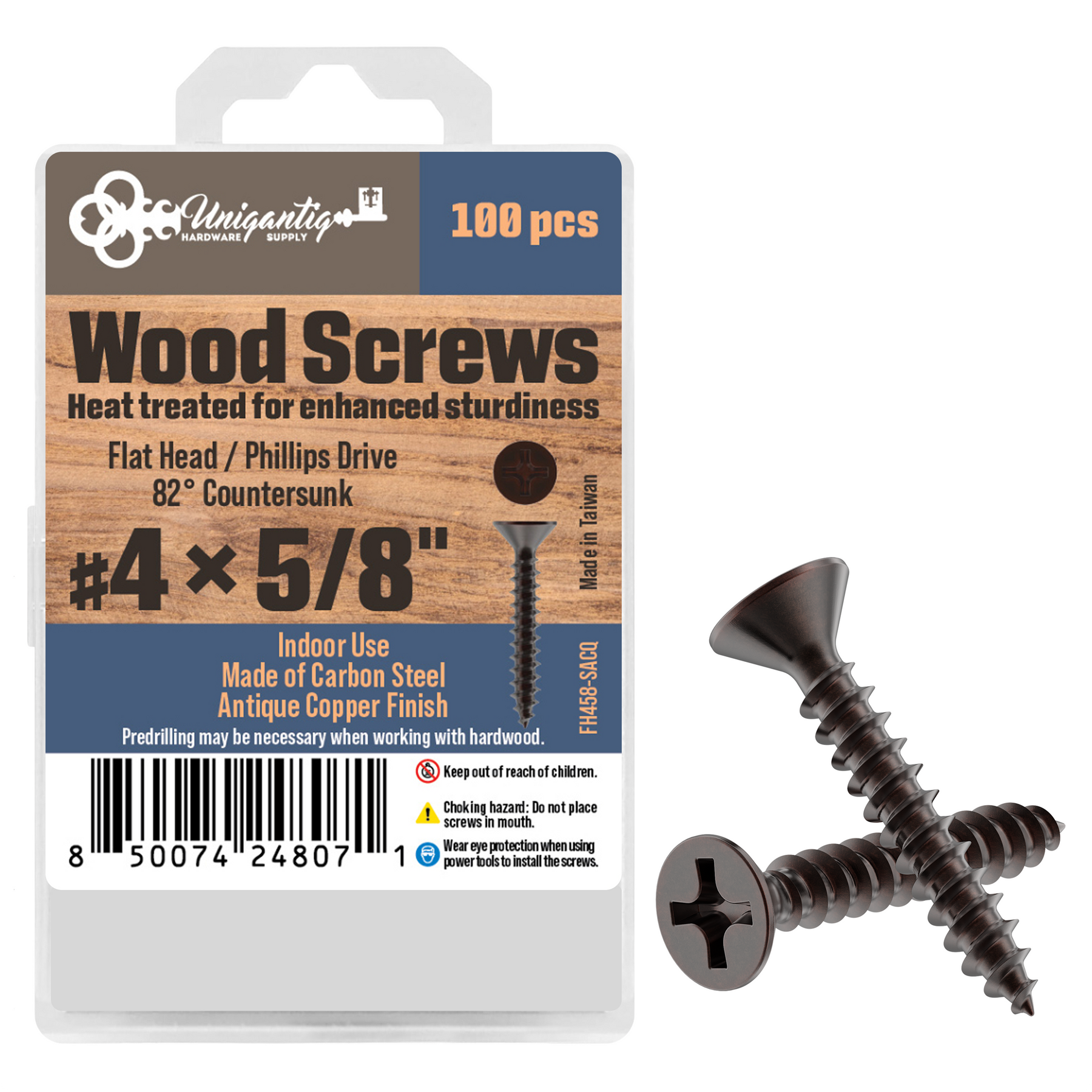 - Made of steel with an antique copper finish applied, these decorative wood screws offer both strength and aesthetic appeal for any woodworking or cabinetry task.