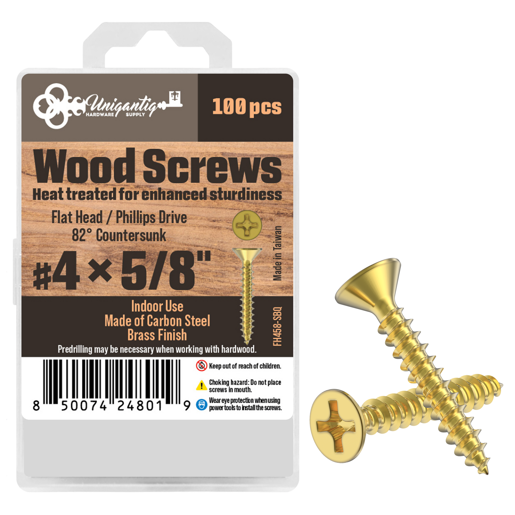#4 x 5/8" Brass Flat Head Phillips Wood Screws - Pack of 25 - Self Tapping Screws for Wood