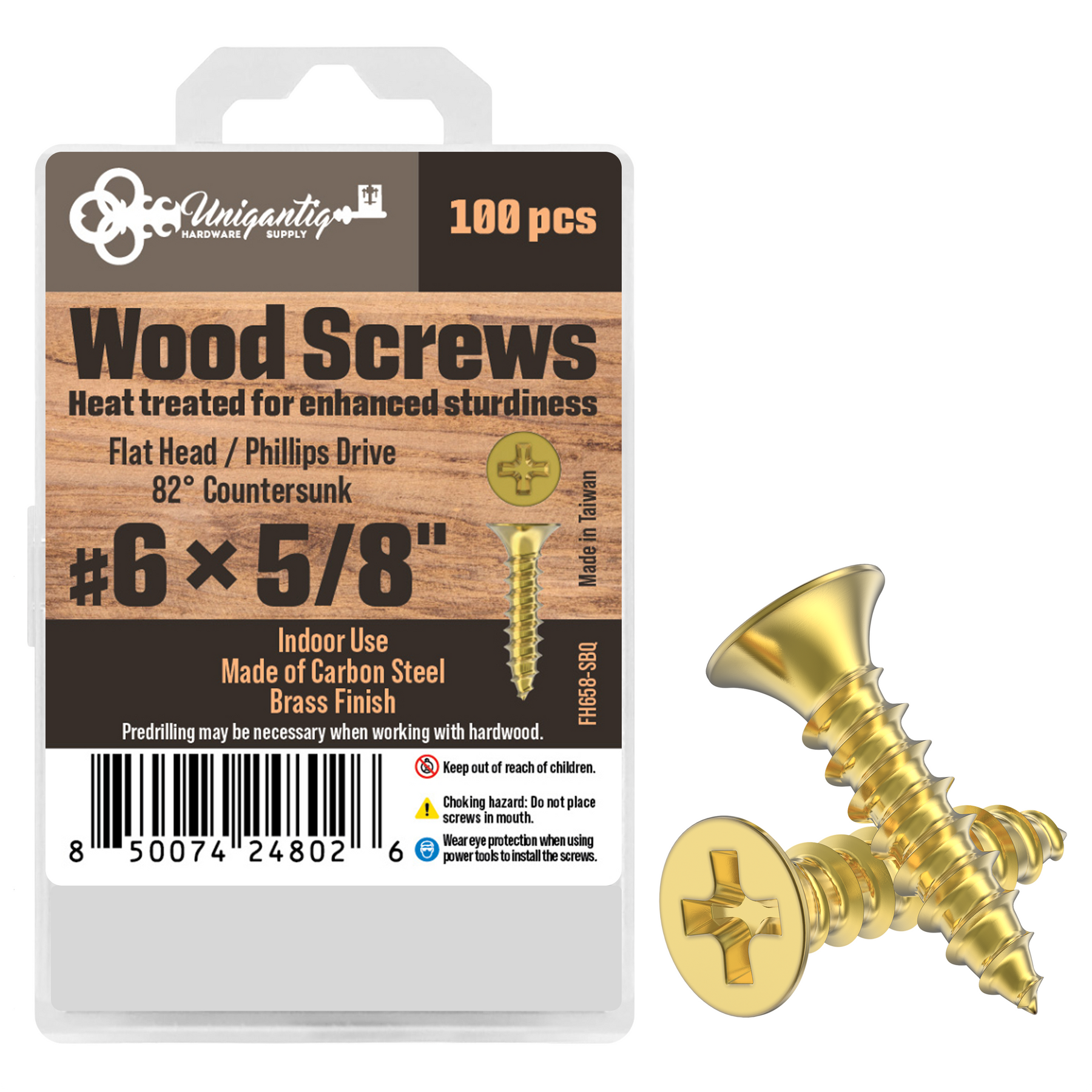 - Made of steel with a brass finish applied, these decorative wood screws offer both strength and aesthetic appeal for any woodworking or cabinetry task.