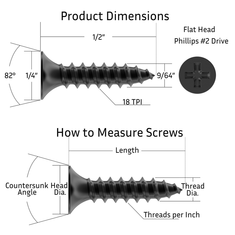 - Made of steel with a flat black finish applied, these decorative wood screws offer both strength and aesthetic appeal for any woodworking or cabinetry task.
