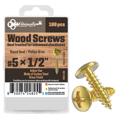 #5 x 1/2" Brass Round Head Phillips Wood Screws - Self Tapping Screws for Wood