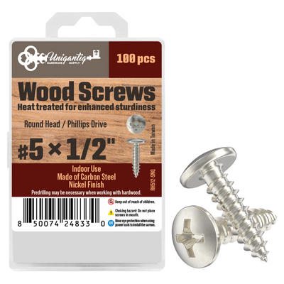 #5 x 1/2" Nickel Round Head Phillips Wood Screws - Self Tapping Screws for Wood