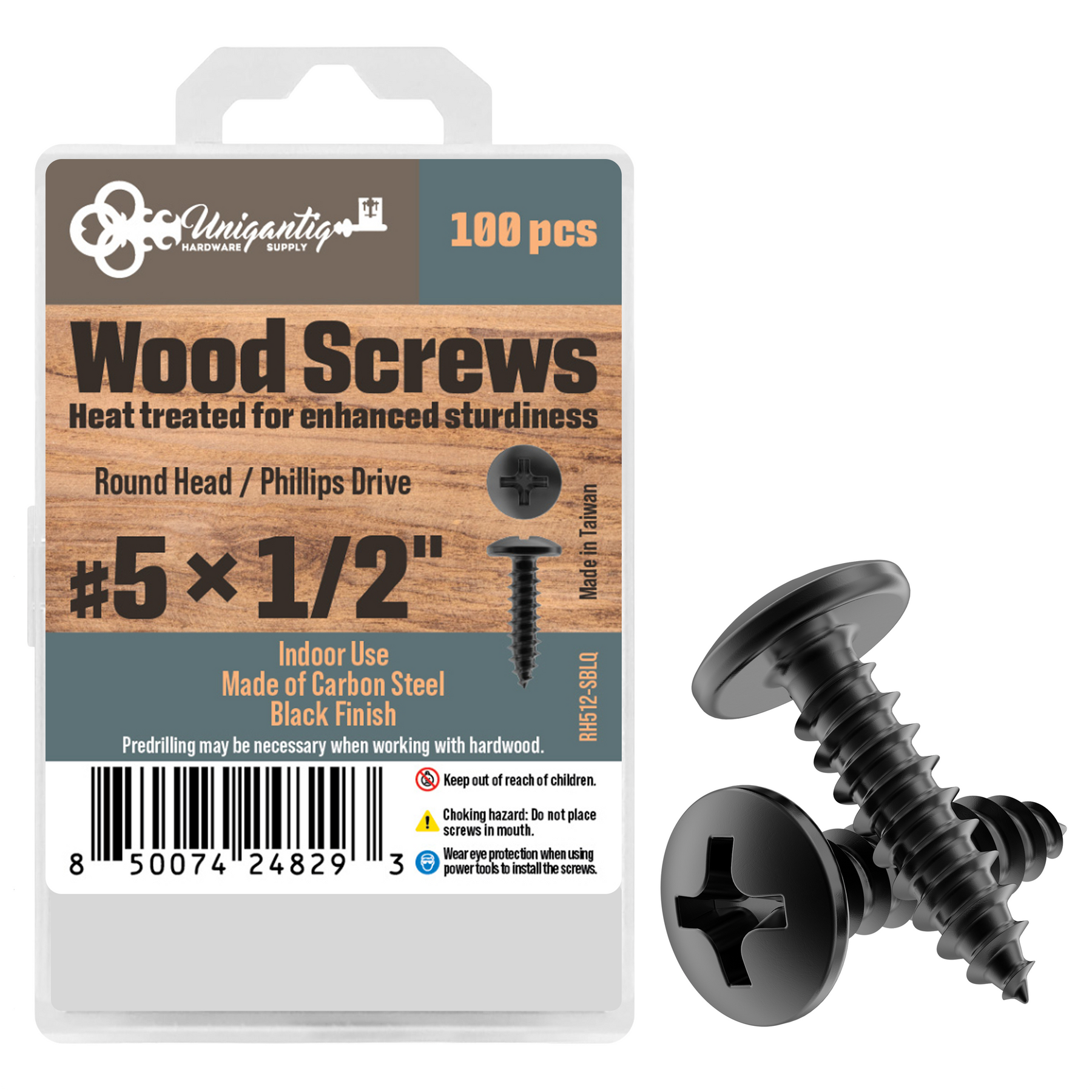 - Made of steel with a flat black finish applied, these decorative wood screws offer both strength and aesthetic appeal for any woodworking or cabinetry task.
