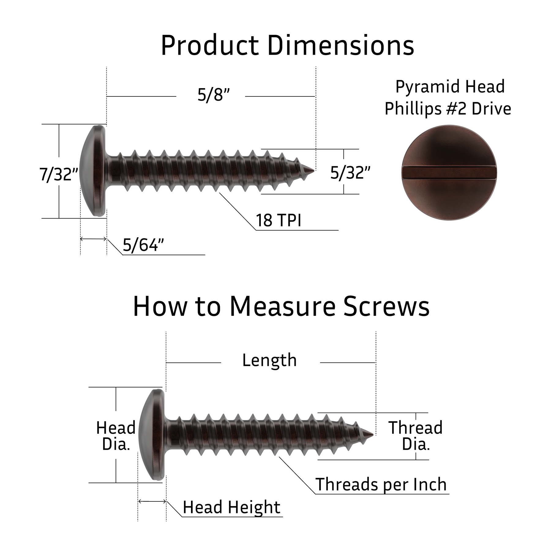 - Material: These round head screws are made of steel with an antique copper finish applied.