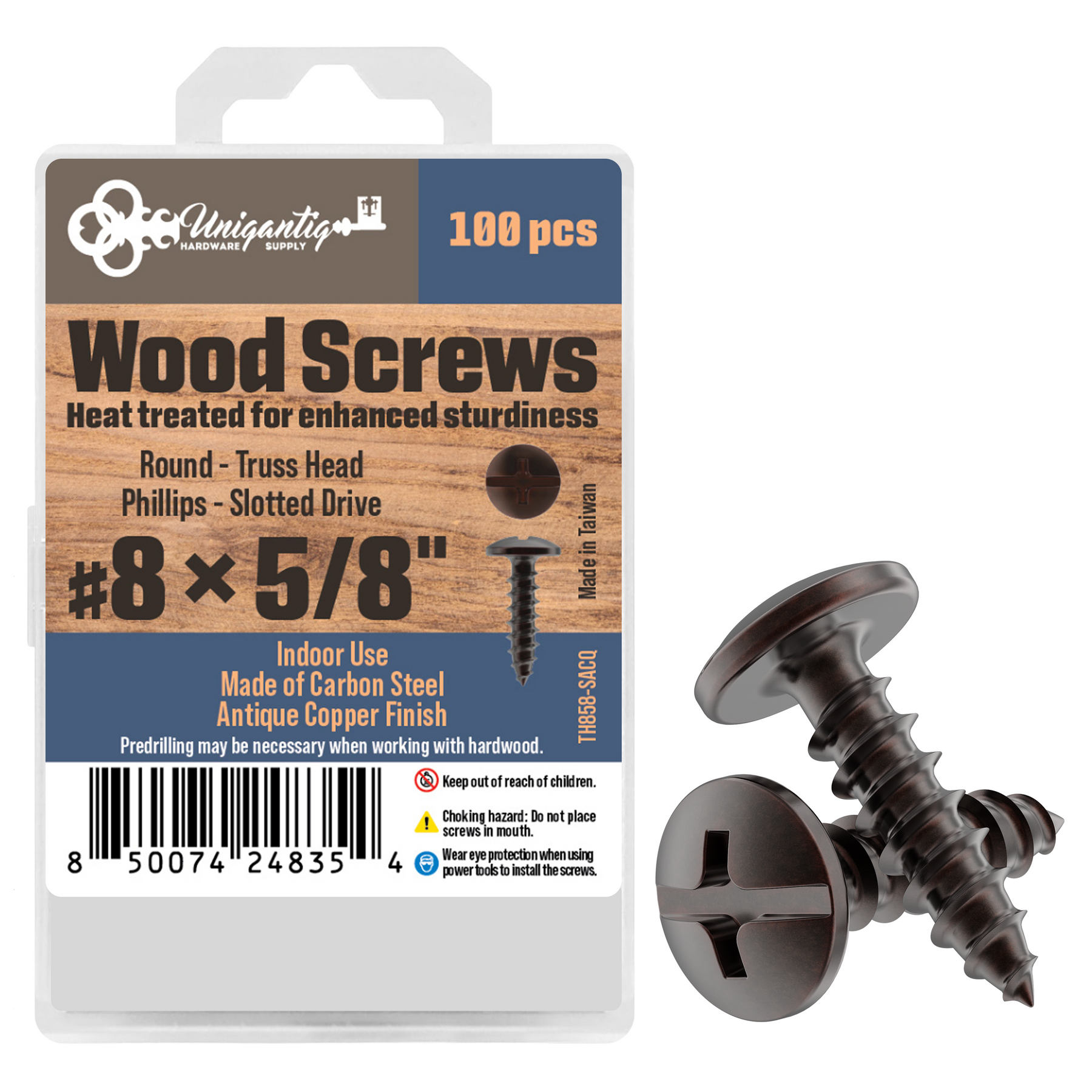 - Made of steel with an antique copper finish applied, these decorative wood screws offer both strength and aesthetic appeal for any woodworking or cabinetry task.