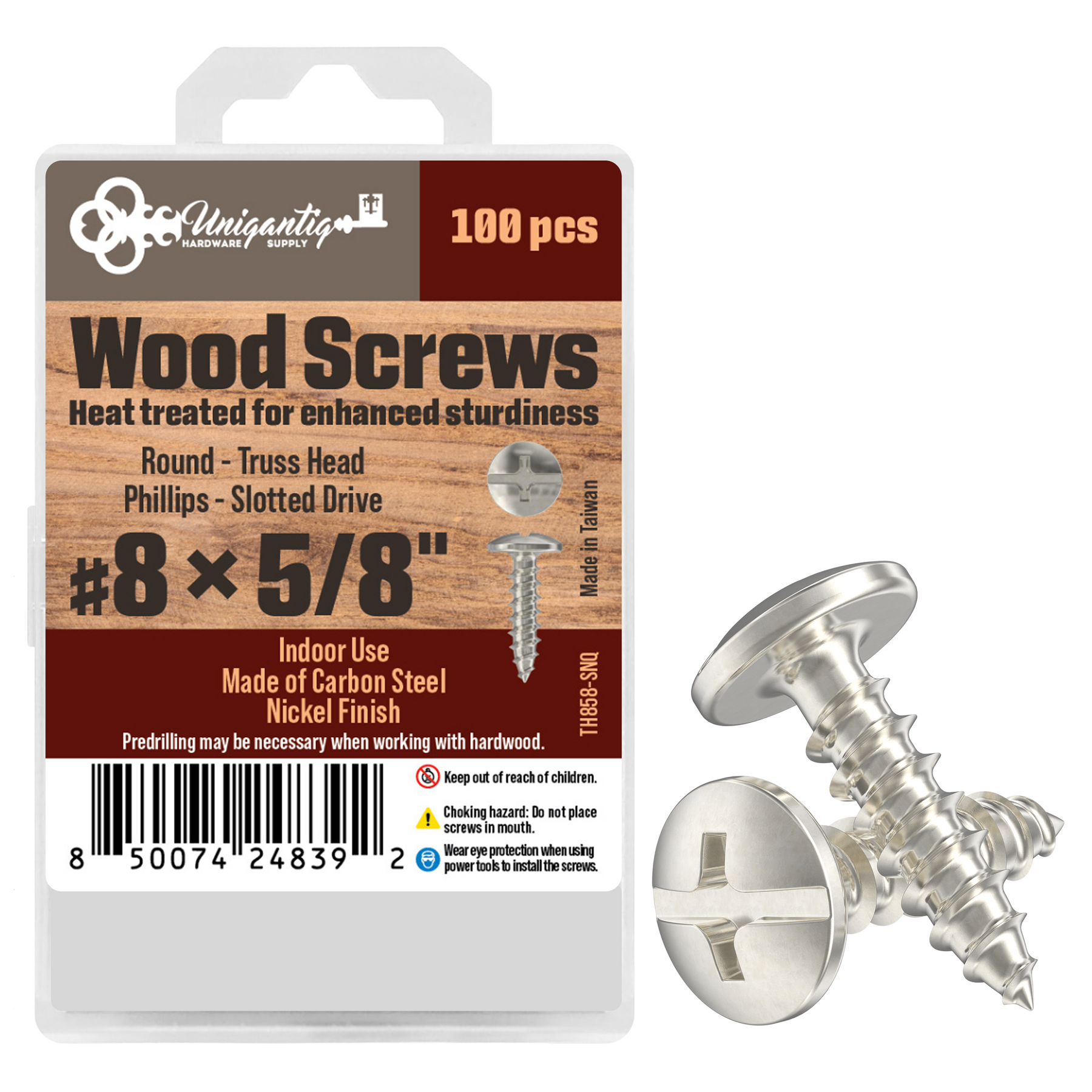 - Made of steel with a nickel finish applied, these decorative wood screws offer both strength and aesthetic appeal for any woodworking or cabinetry task.
