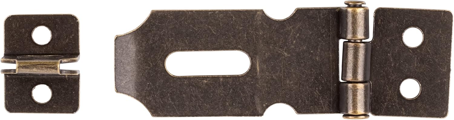 - This hasp lock latch is made of steel with an antique brass finish applied.