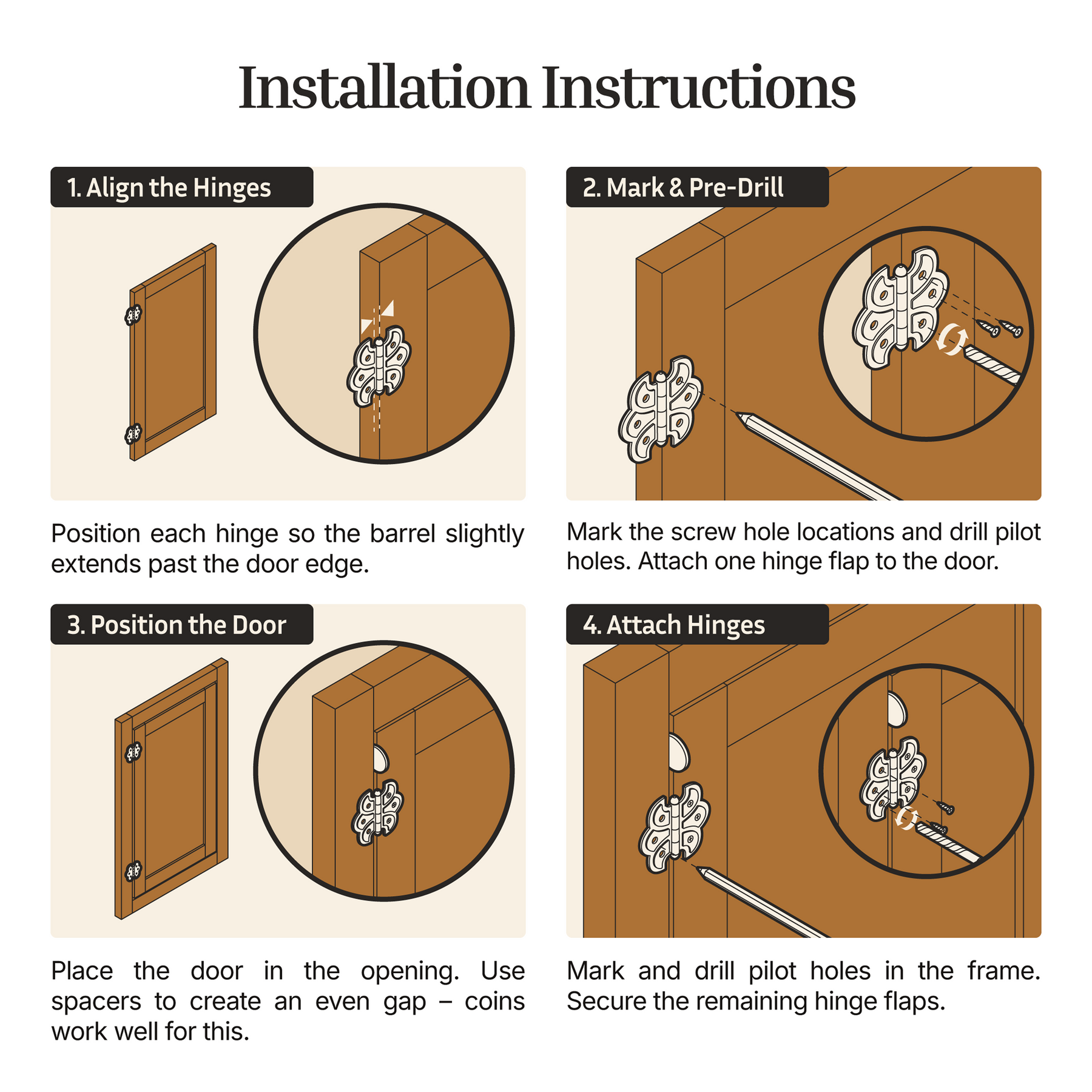 - These butterfly hinges can be used on cabinet doors, boxes, and more. They are nice hardware for furniture restoration or working on new projects.