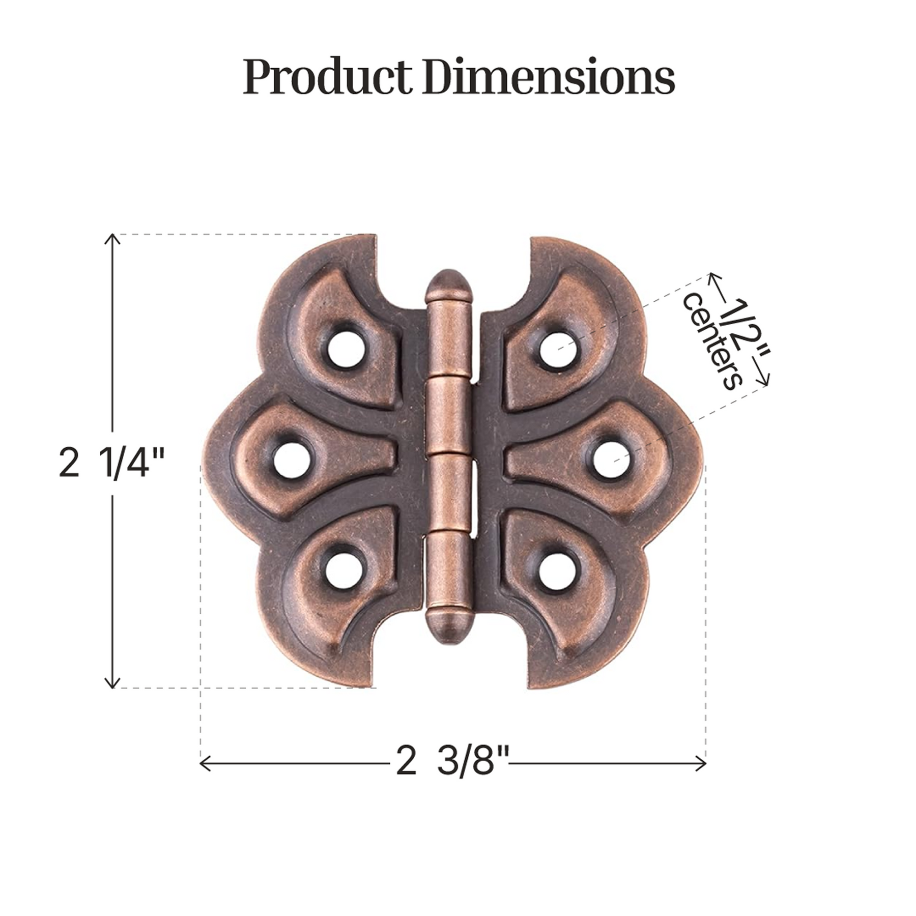 - These butterfly hinges are made of steel with an antique copper finish applied.