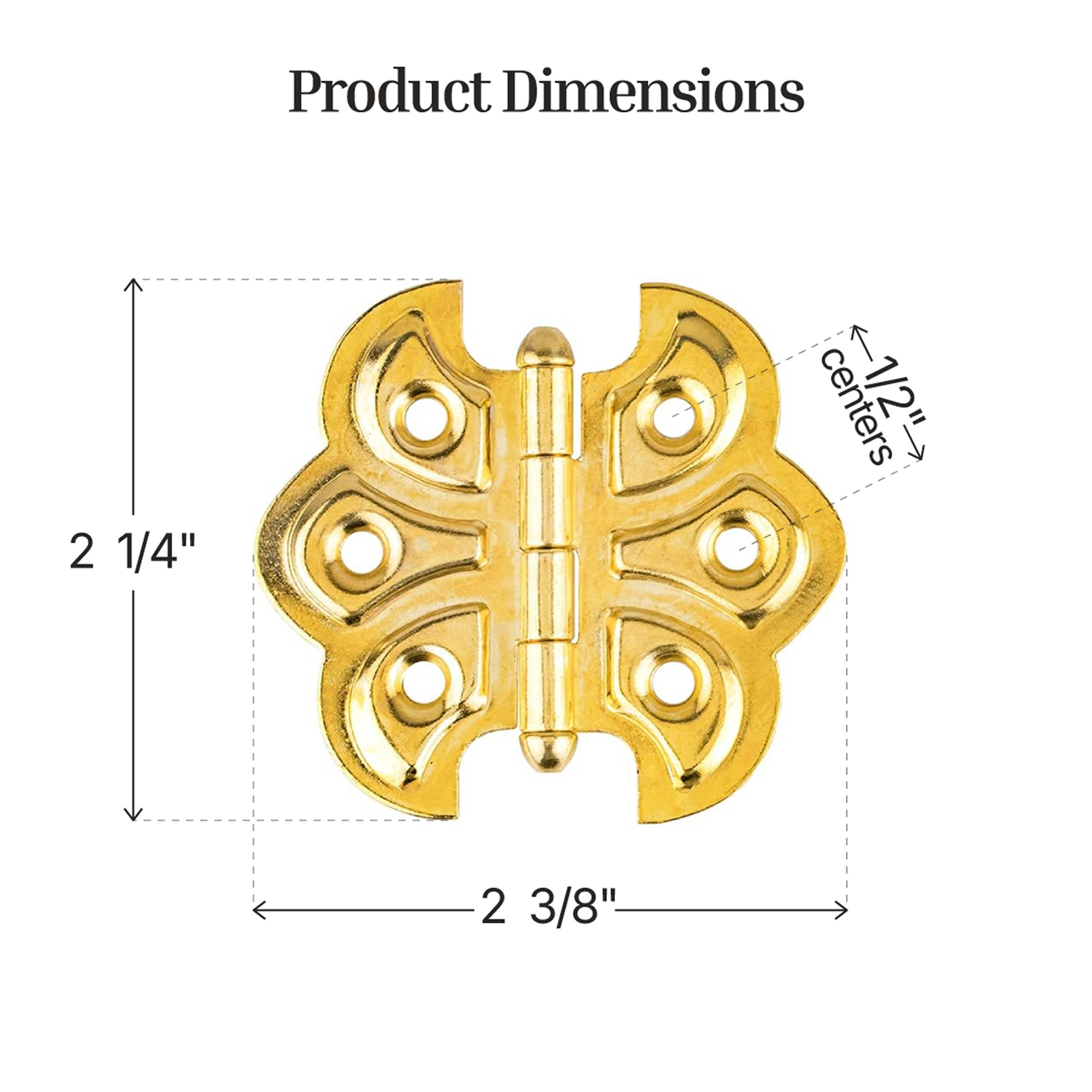 - Overall size: 2 1/4" Wide x 2" High; Each Wing: 1 1/4".
