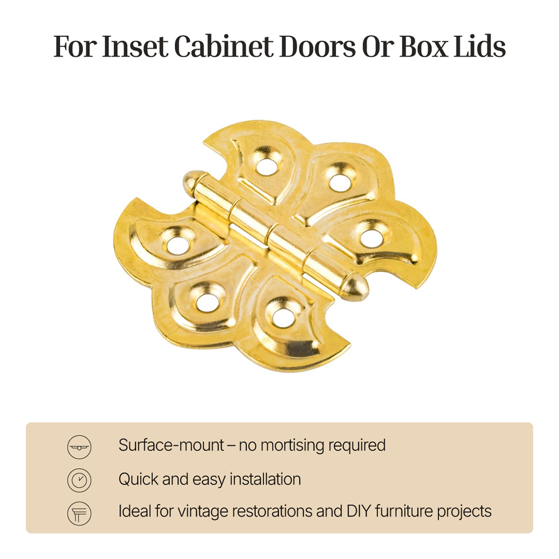 - Thanks to their timeless design, our decorative hinges can complement most exterior decor and will find their place in your kitchen, bedroom, bathroom, or anywhere else in your house.